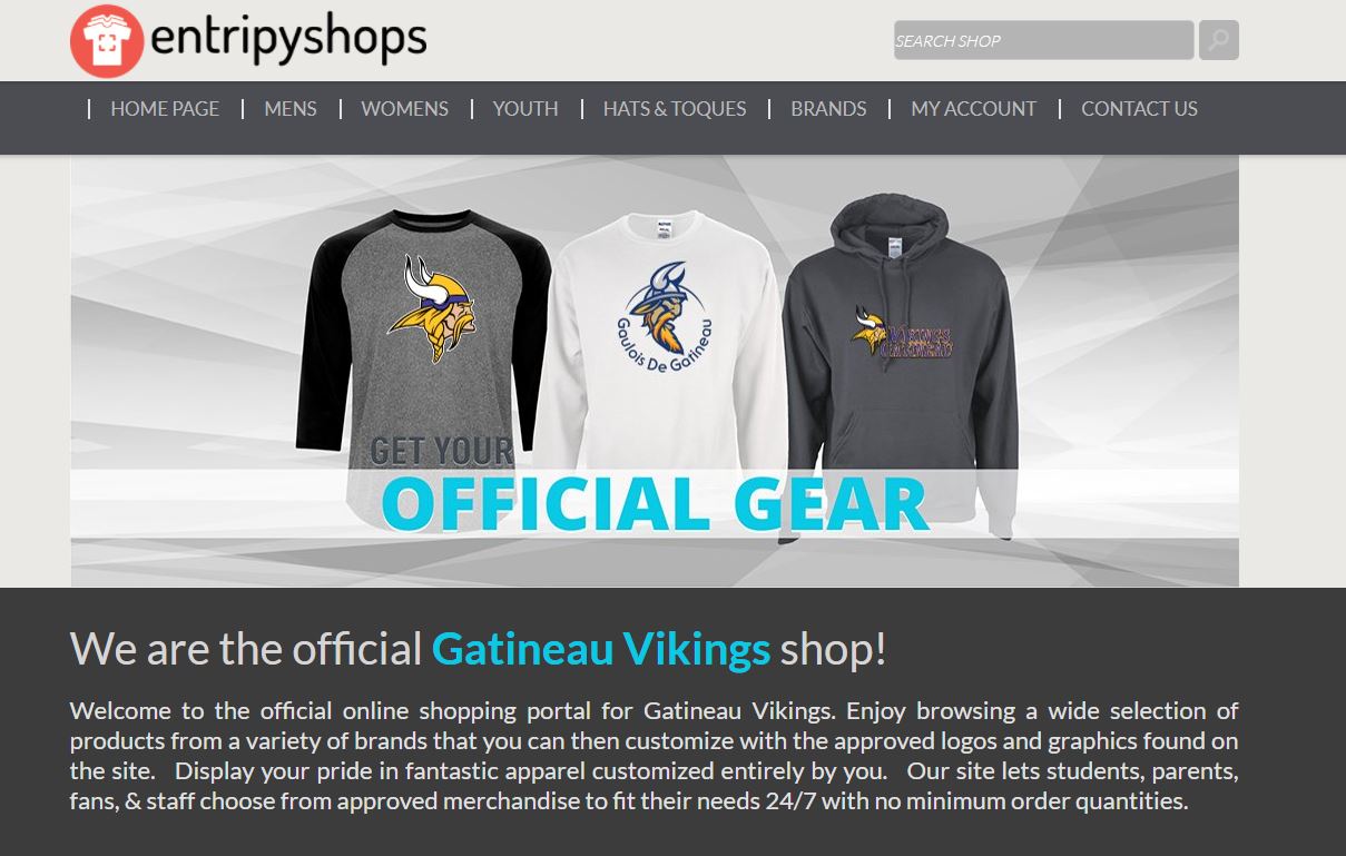 Profitez de la navigation sur une large sélection de produits de différentes marques que vous pouvez ensuite personnaliser avec les logos et graphiques approuvés trouvés sur le site. Affichez votre fierté dans des vêtements fantastiques entièrement personnalisés par vous. Et, 10% des ventes reviennent au Club. Alors, jetez-y un coup d’œil dès aujourd’hui ! https://gatineauvikings.entripyshops.com/
